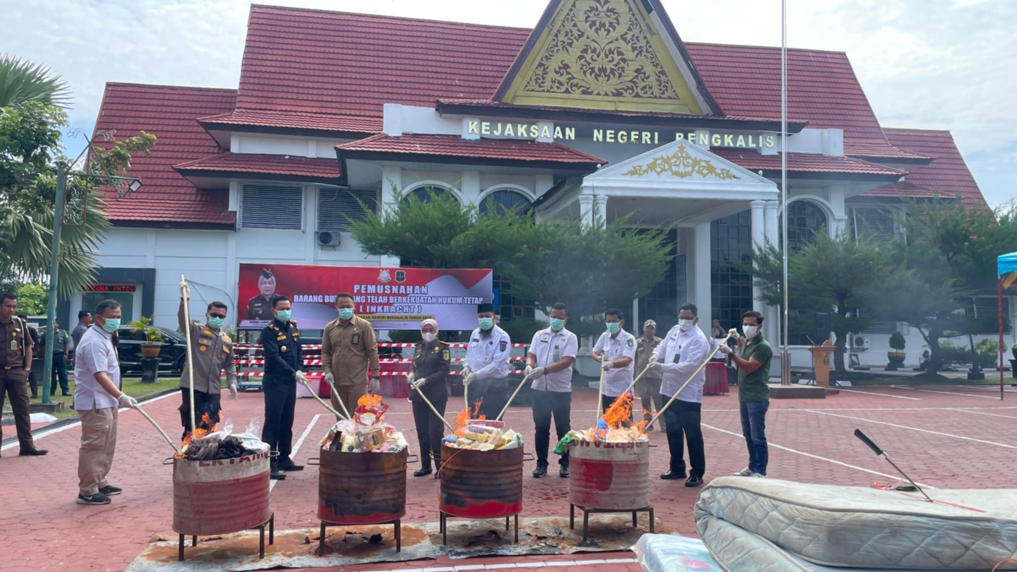 Kejaksaan Negeri (Kejari) Bengkalis kembali menegaskan komitmennya dalam penegakan hukum dengan memusnahkan ribuan gram narkotika dan ribuan karung barang ilegal dari perkara yang telah berkekuatan hukum tetap. Pemusnahan berlangsung di halaman.