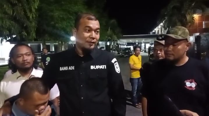 Bupati Indragiri Hulu (Inhu) Ade Agus Hartanto SSos MSi memberikan penjelasan kepada wartawan terkait kedatangan tim Komisi Pemberantasan Korupsi (KPK) ke Kantor Bupati Inhu dan kediaman pribadinya, Kamis (18/12/2025). Klarifikasi tersebut.