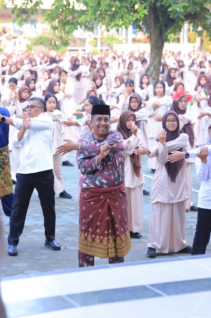 Pj. Wali Kota Pekanbaru Roni Rakhmat menghadiri Kegiatan Senam Anak Indonesia.