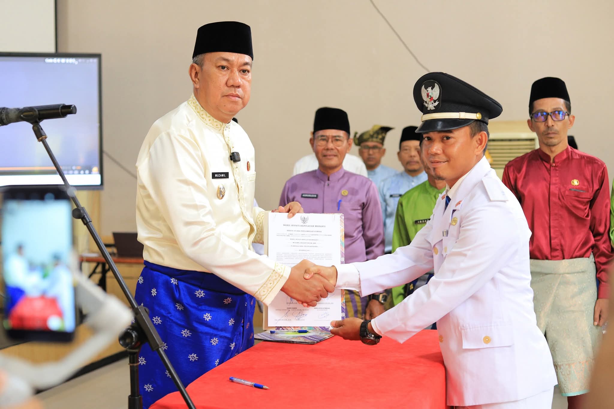 Wakil Bupati Kepulauan Meranti, Muzamil Baharudin SM MM, melantik dan mengambil sumpah tiga Penjabat Kepala Desa (Pj Kades) di lingkungan Pemerintah Kabupaten Kepulauan Meranti, Jumat.